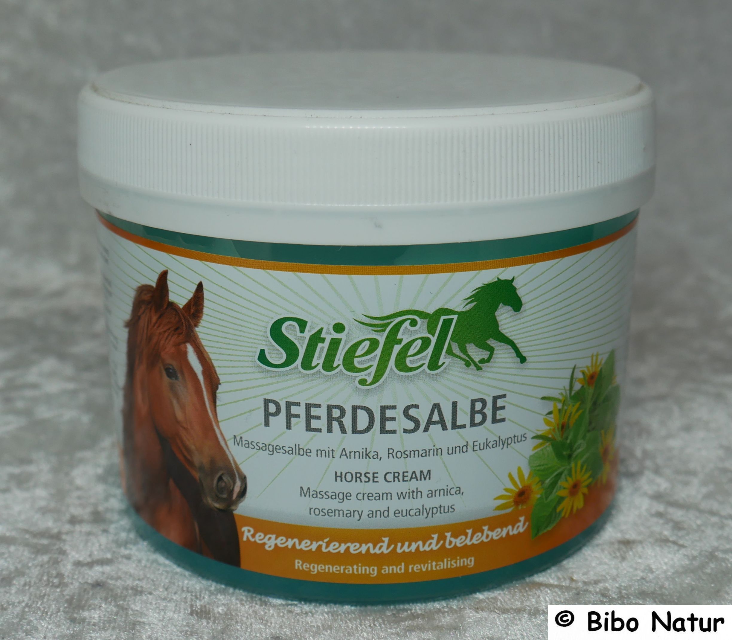 Pflegemittel Die Pferdesalbe von Stiefel ist eine bewährte Pflege für Muskeln, Sehnen und Gelenke, ideal nach intensiver körperlicher Belastung. Dank der erfrischenden, kühlenden Wirkung eignet sich Stiefel Pferdesalbe hervorragend zur Pflege nach dem Training oder an warmen Tagen. Die wohltuende Rezeptur mit pflegenden Inhaltsstoffen ist leicht aufzutragen, zieht schnell ein und kann sowohl bei Pferden als auch bei Menschen verwendet werden. Arnika und Menthol – kühlend und entspannend für Muskeln und Gelenke Einfache Anwendung – zieht schnell ein und pflegt wohltuend Für Pferde und Menschen – ideal nach körperlicher Anstrengung oder bei Verspannungen Anwendung:Die Salbe in das Fell einmassieren, danach eine dickere Schicht auftragen und einwirken lassen. Inhaltssoffe nach INCI: Aqua, Isopropyl Alcohol, Arnica Montana, Mentholsodium carbomer, Rosmarinus Officinalis, Eucalyptus Globulus, Cymbopogon Schoenanthus Oil, Phenoxyethanol, Octoxyglycerin, Chlorophyll, CI 420 Lagerung: Damit unsere Produkte auch nach dem Kauf noch lange haltbar bleiben, ist eine trockene und kühle Aufbewahrung wichtig. Ebenso sollten sie vor direkter Sonneneinstrahlung geschützt werden, damit die wertvollen Inhaltsstoffe lange erhalten bleiben.